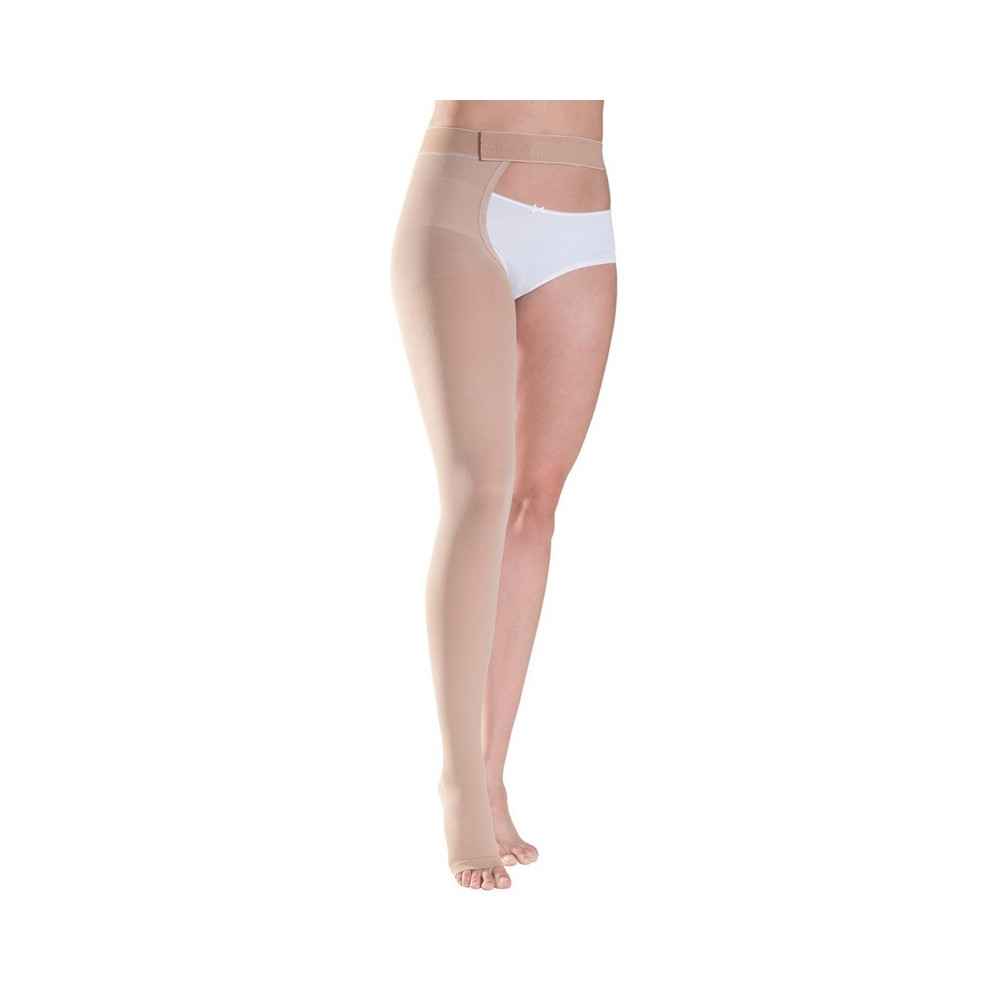 Δεξιά κάλτσα ριζομηρίου με ζώνη Sigvaris Cotton 1 Κλάση 1 Μπεζ με Ανοιχτά δάκτυλα | Μήκος Normal